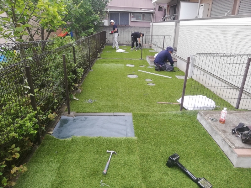 今回の工事は神奈川県のマンション全室ご依頼をいただきました。 マンション理事会様は、すでに住んでらっしゃる住民の方々からの雑草や蚊の対策としてご検討いただきました。 実際に人工芝をお見せすると今後の入居者の方々も好感度の高いおしゃれな景観になるとお褒めいただ句ことができました。 埼玉県と東京に支店がある弊社でも、神奈川県でも法人様の案件工事も多かったのですが、 神奈川県ではマンションのお庭全室のご依頼は初めてでした。