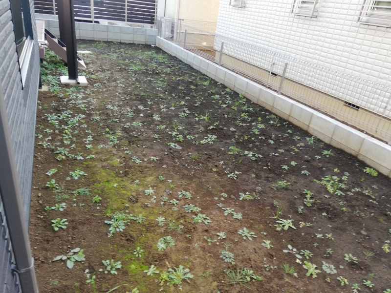 埼玉県の新築のご自宅、雑草対策の人工芝だけでなく、もっとオシャレにしたいとのご要望がありました。