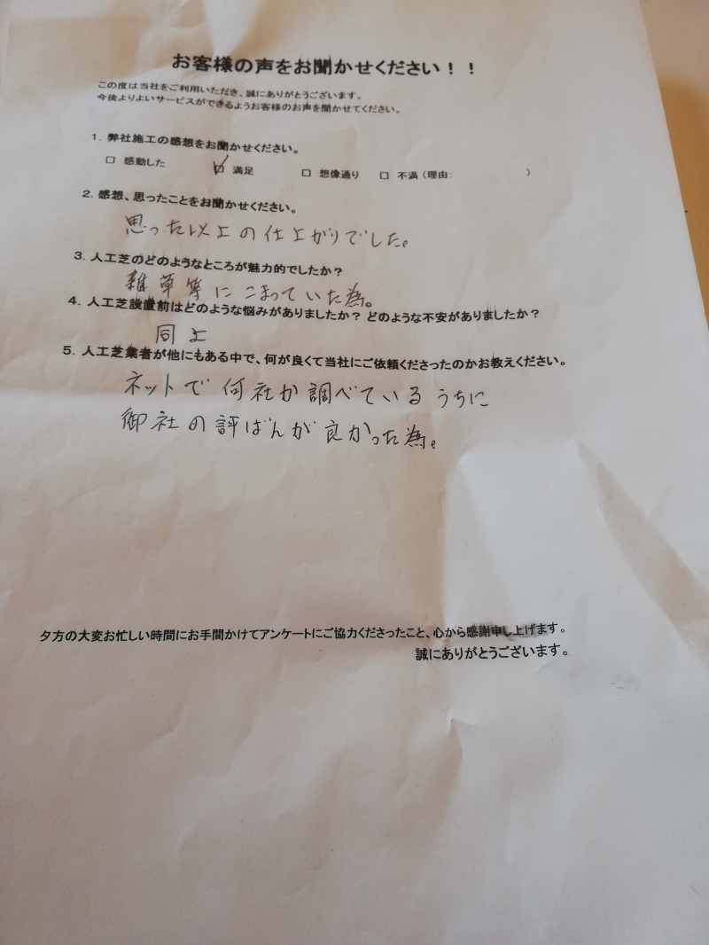 その際に人工芝の種類を見ていただき選んでいただけます。