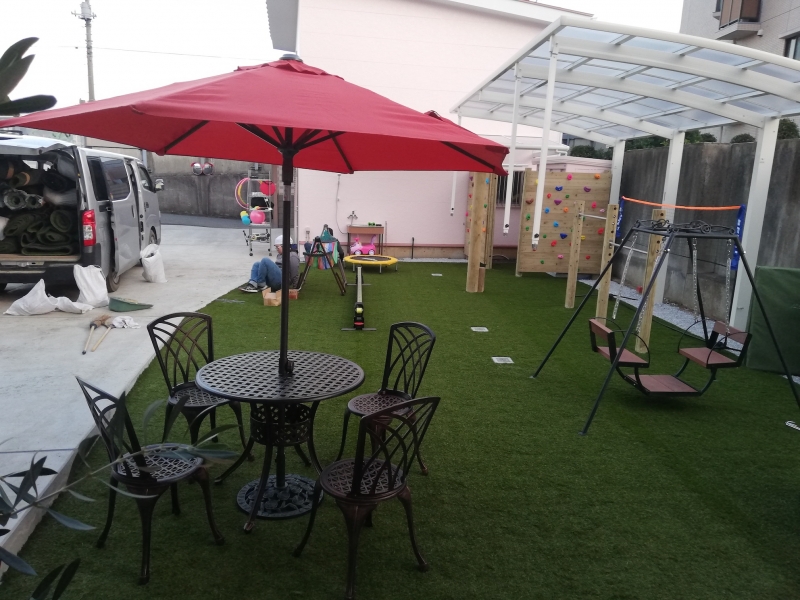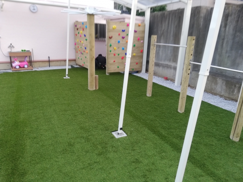 人工芝の特徴は「可愛い景観」なだけでなく、「清潔」「柔らかい」などがあります。 室内でのストレッ...