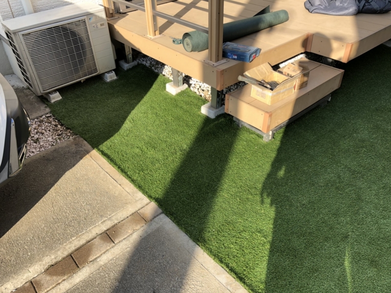 こちらのお客様は一度、他の外構業者に人工芝をご依頼したようなのですが、あまりに酷い出来栄えでショックを受けておりました。