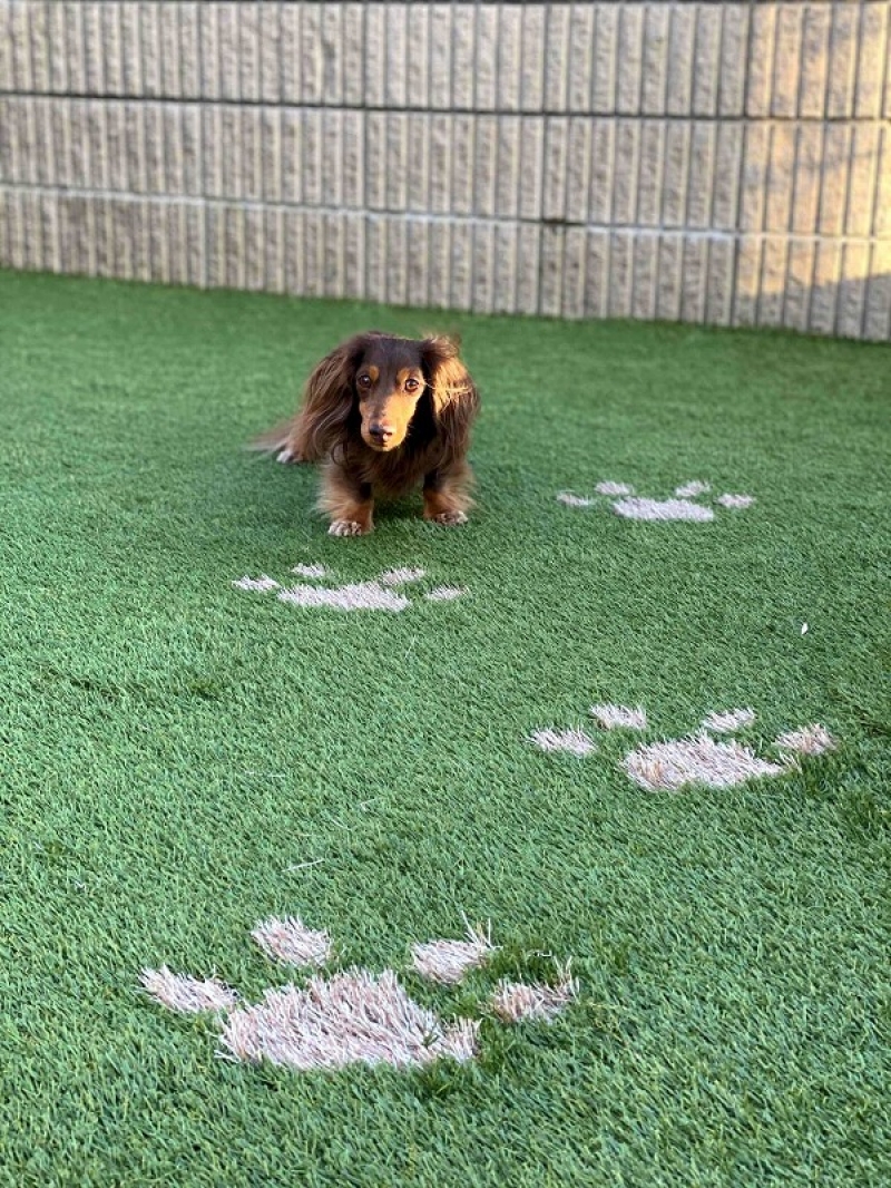 今回の写真は、市川市でわんちゃんが大好きなお客様がお写真をくださいました。 お客様もわんちゃんも大喜びくださって本当に嬉しいです。 特に、弊社の得意とするカラー人工芝、肉球で可愛くお庭を工事しました! 今回は千葉県市川市でしたが、本社の埼玉・東京以外にも神奈川や茨城県でも人工芝工事をしております。