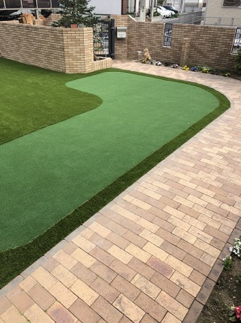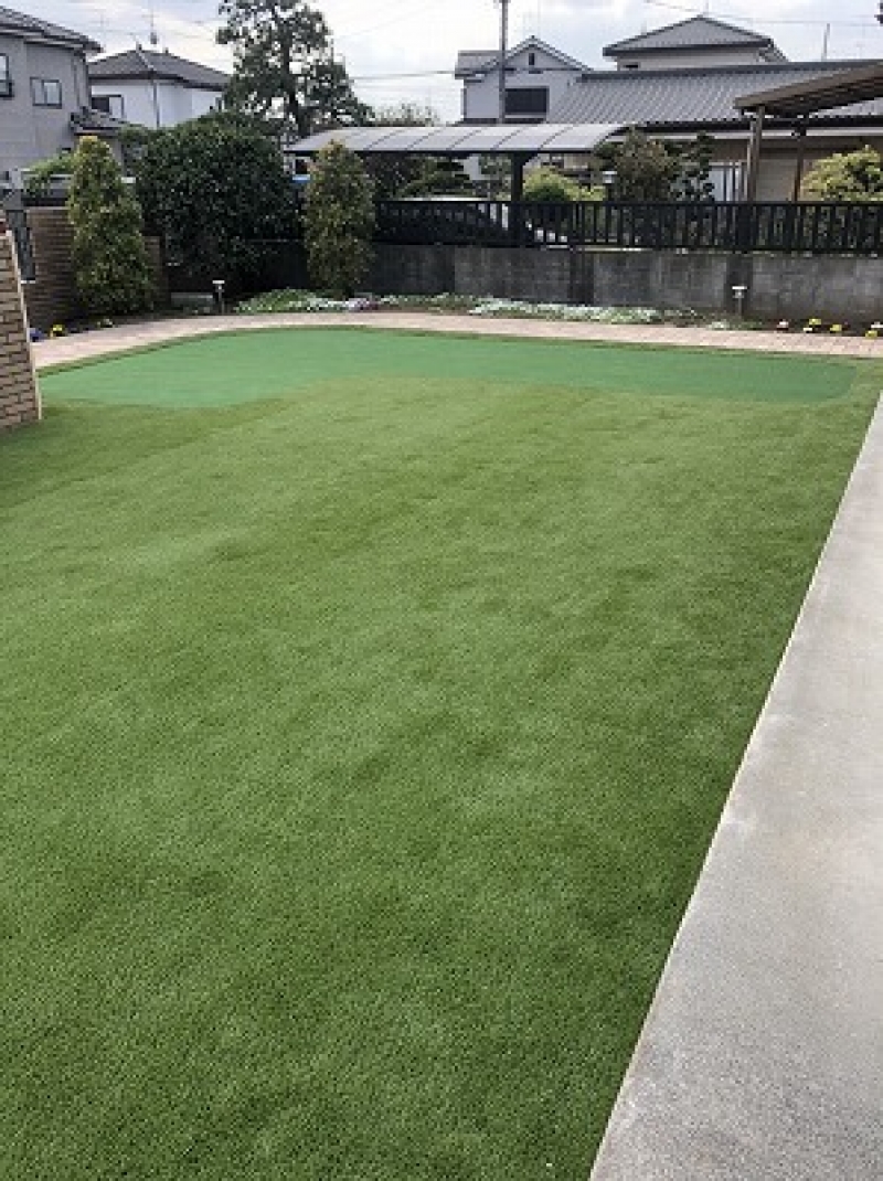 元々天然芝だった70平米のお庭をご主人の夢だったパターゴルフに張り替え工事致しました。 特にグリーンの水平レベルに感動されていました。 主な作業の流れは以下となります。 ・天然芝撤去廃棄 ・残土処分 ・下地材搬入 ・パターゴルフ専用下地づくり ・人工芝工事 ・充てん剤の充てん ご注文ありがとうございました!