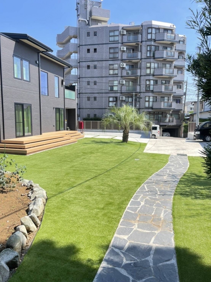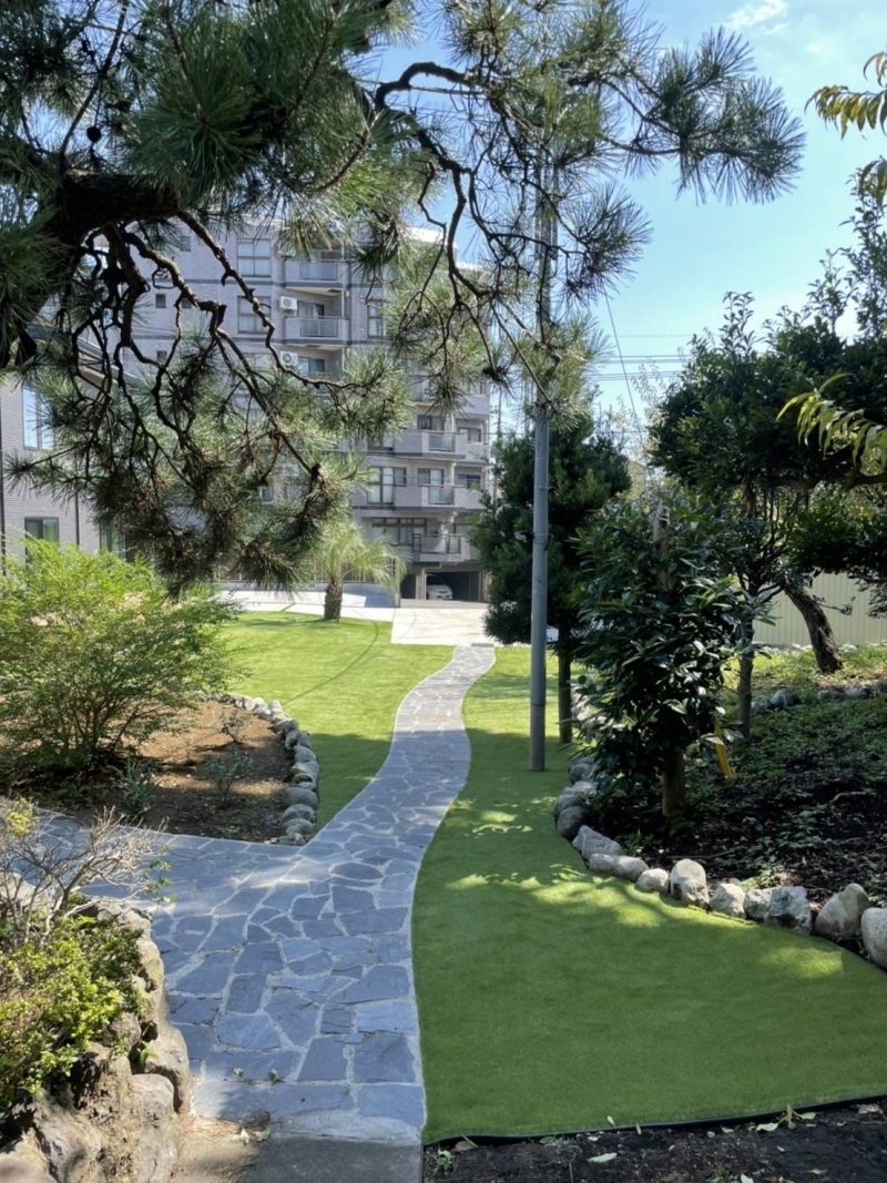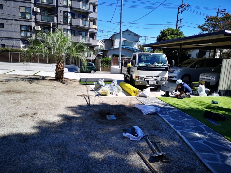 今回は諸々の兼ね合いでお客様にて天然芝の撤去は行っていただきました。 弊社では天然芝の撤去廃棄一...