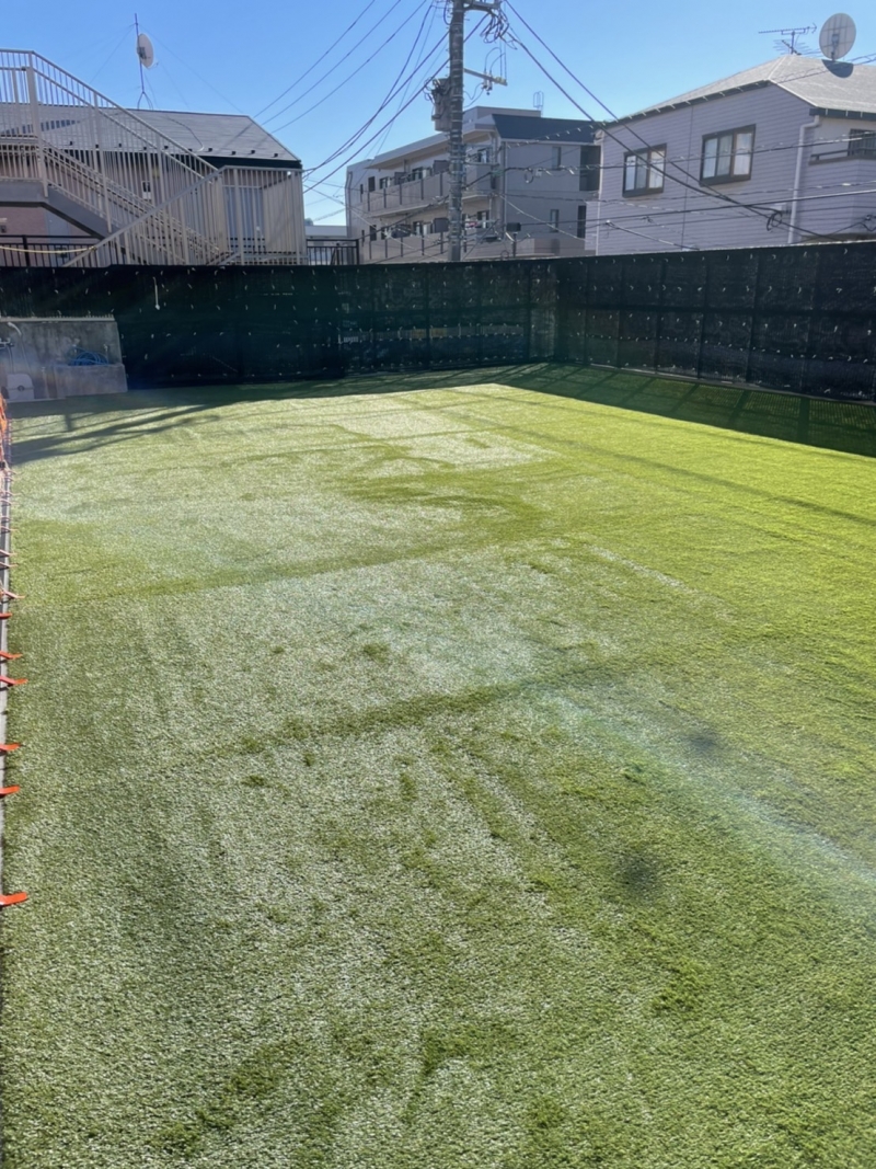 今回は既存の人工芝が貼ってあったため、それを撤去してからの工事となりました。