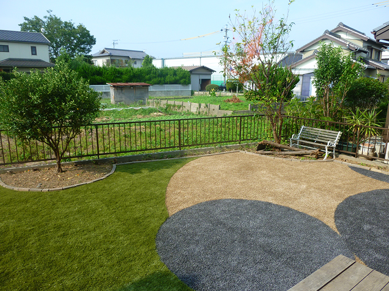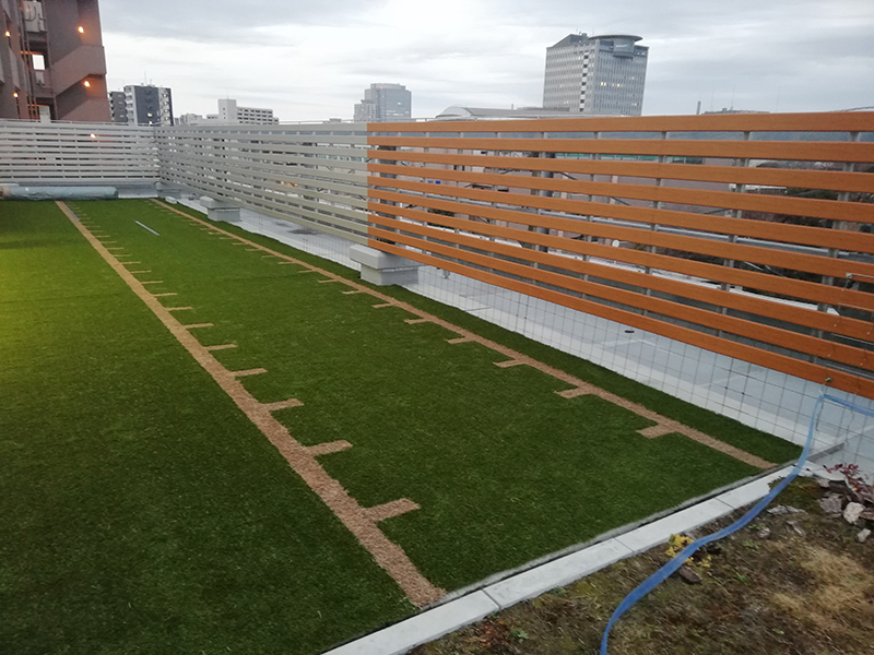 また、人工芝自体の質もあまり高くなく、肌触りや、耐久性、質感、においなども含め、天然芝に劣る状態でした。